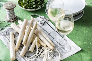 Witte asperges hebben niet dezelfde uitgesproken smaak als de groene asperges. Hoe smaken ze dan? Romiger en wat zoeter en dus zachter van smaak. Daar passen dus ook iets zachtere witte wijnen bij zoals de: