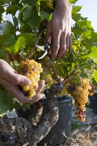 - De wijngaarden liggen verspreid over beide eilanden, met koele zeewind en veel zon.