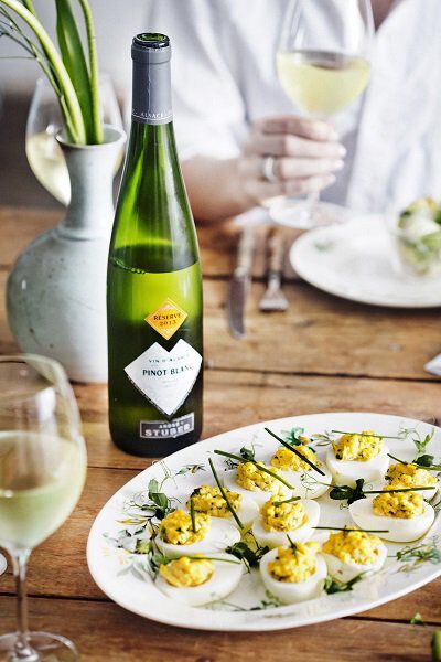 Een lekkere wijn schenken bij gerechten met ei is lastig. Wijn en ei zijn namelijk niet de beste vrienden. Hoe dat komt? Ei is van nature niet zuur en haalt daarom de zure tonen in de wijn naar boven. En tja, te zuur is nou eenmaal niet bepaald lekker. Maar er is één wijn die wel goed past bij ei: Pinot blanc!